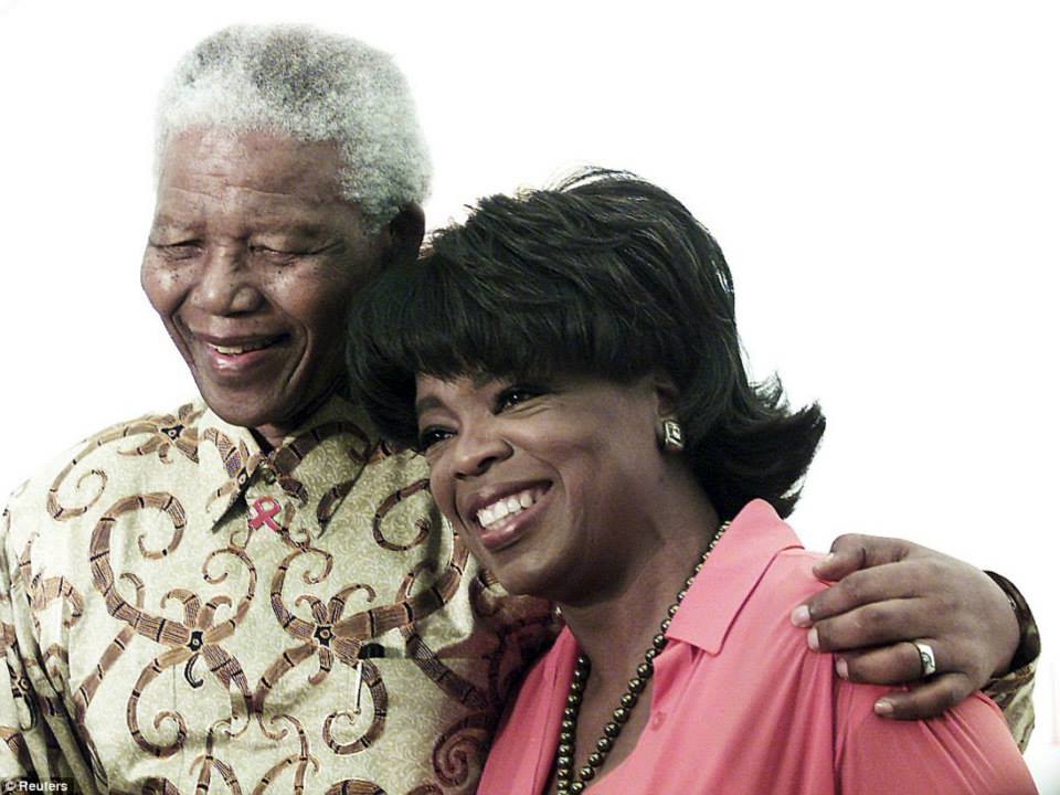 Oprah Winfrey with Nelson Mandela. He struggled for the rights of black people. All Africans in Africa were concerned about mistreatment of blacks.