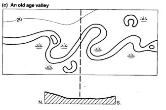 9. Whenever there are rivers, the relief features are river valleys, there two types of river valleys such as broad wide river valleys for those in mature in and old stages and narrow V- shaped steep sided river valleys for rivers in the youthful stage.