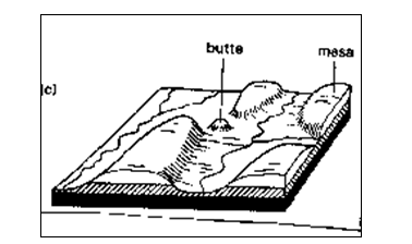 When these hills (Mesas) become very small, They are called Buttes. Normally mesas and buttes are separated by gorges.